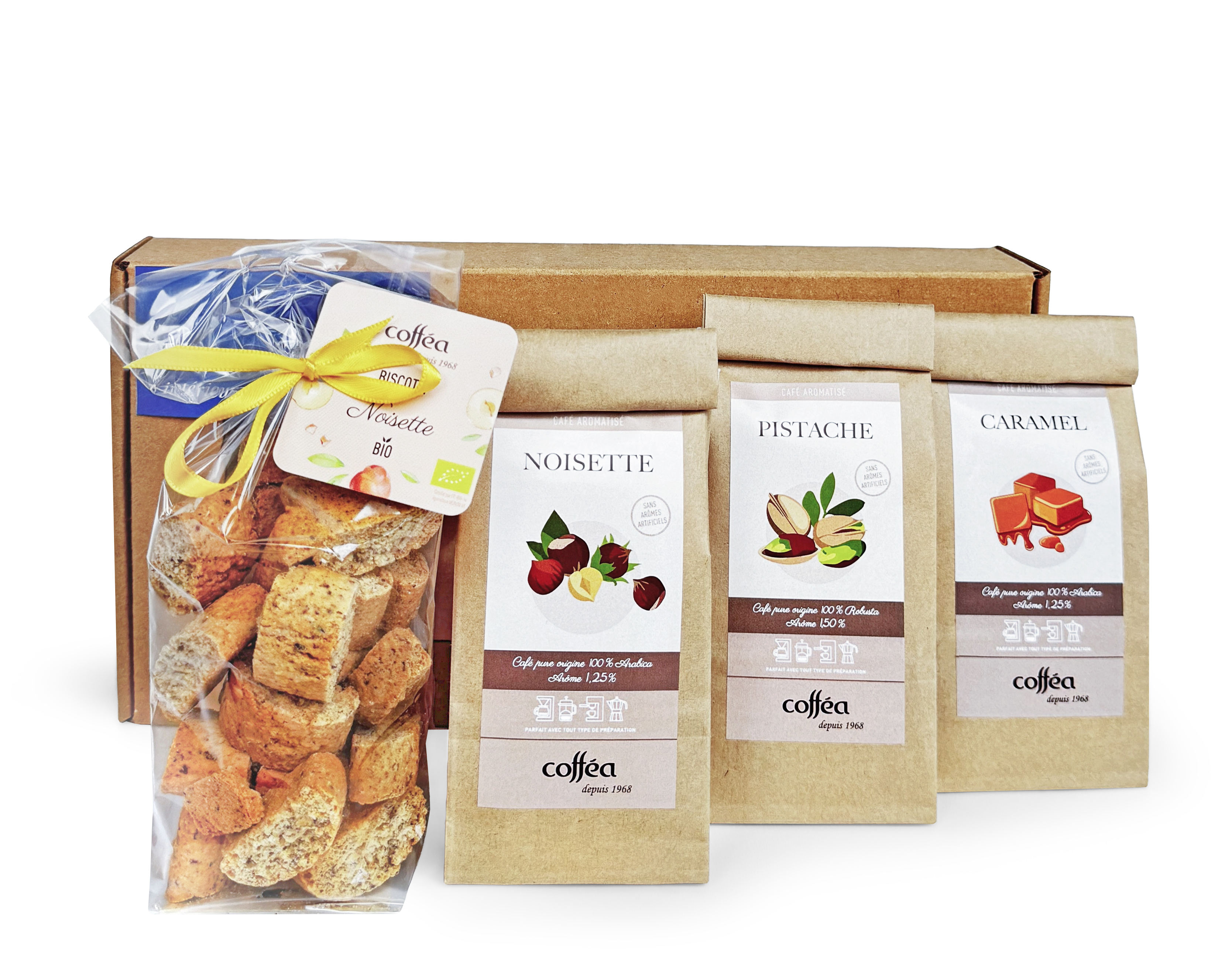 Dans cette boîte se cachent des cafés aux arômes étonnants — noisette, pistache, caramel — capables de remplacer à eux seuls le plus gourmand des desserts. Énergie Aromatique invite à une découverte sensorielle où douceur et intensité se rencontrent. Un cadeau original, plein de caractère, qui séduira tous ceux qui aiment explorer de nouvelles saveurs et transformer la pause café en un vrai moment de plaisir.