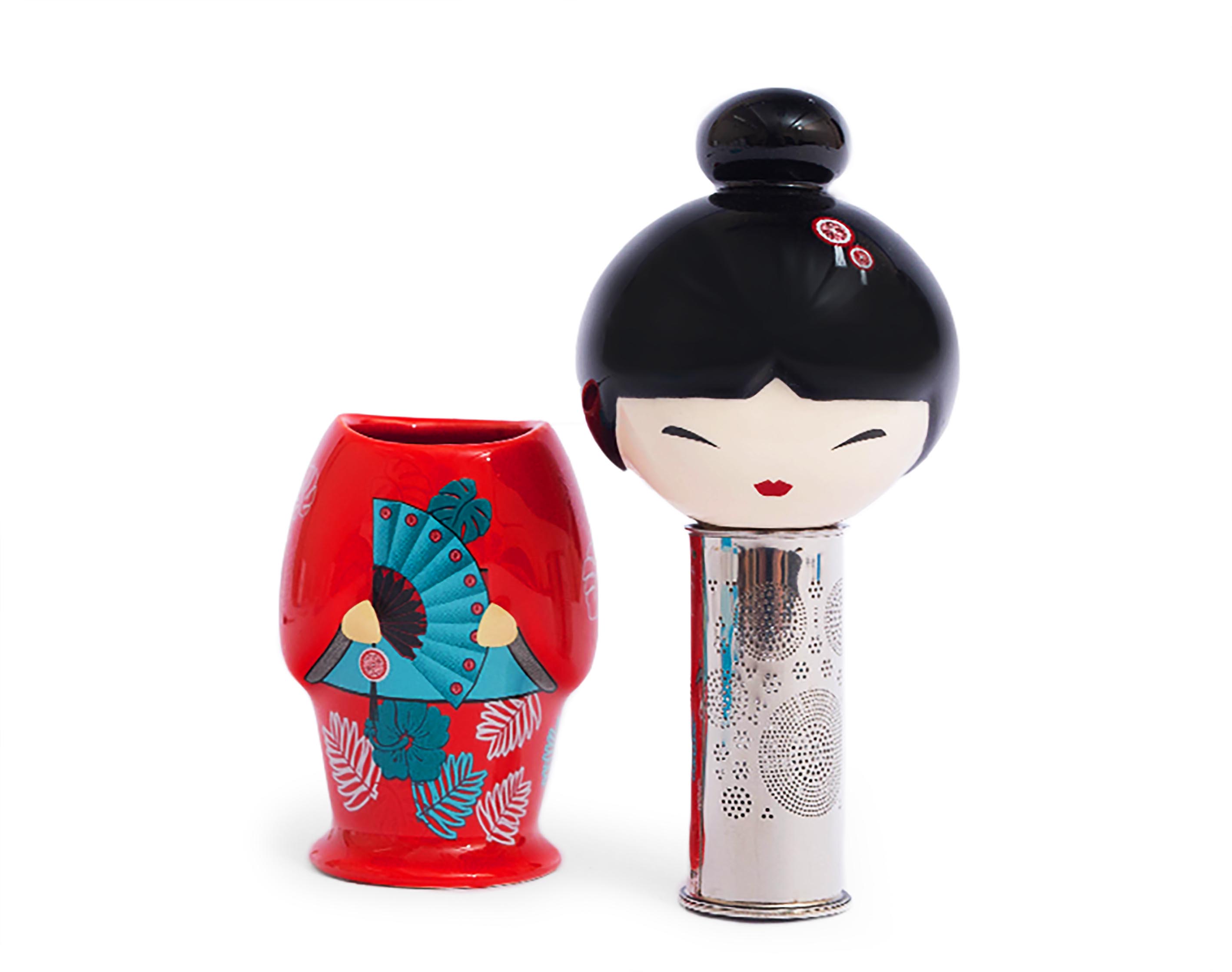 Le design de la poupée est pensé dans les moindres détails et reflète la culture des différents pays producteurs de thé : Inde, Chine, Japon. Chaque poupée a son propre style unique, qui est transféré à la céramique exclusivement à la main. La partie supérieure de la chrysalide sert également de couvercle au filtre en acier.