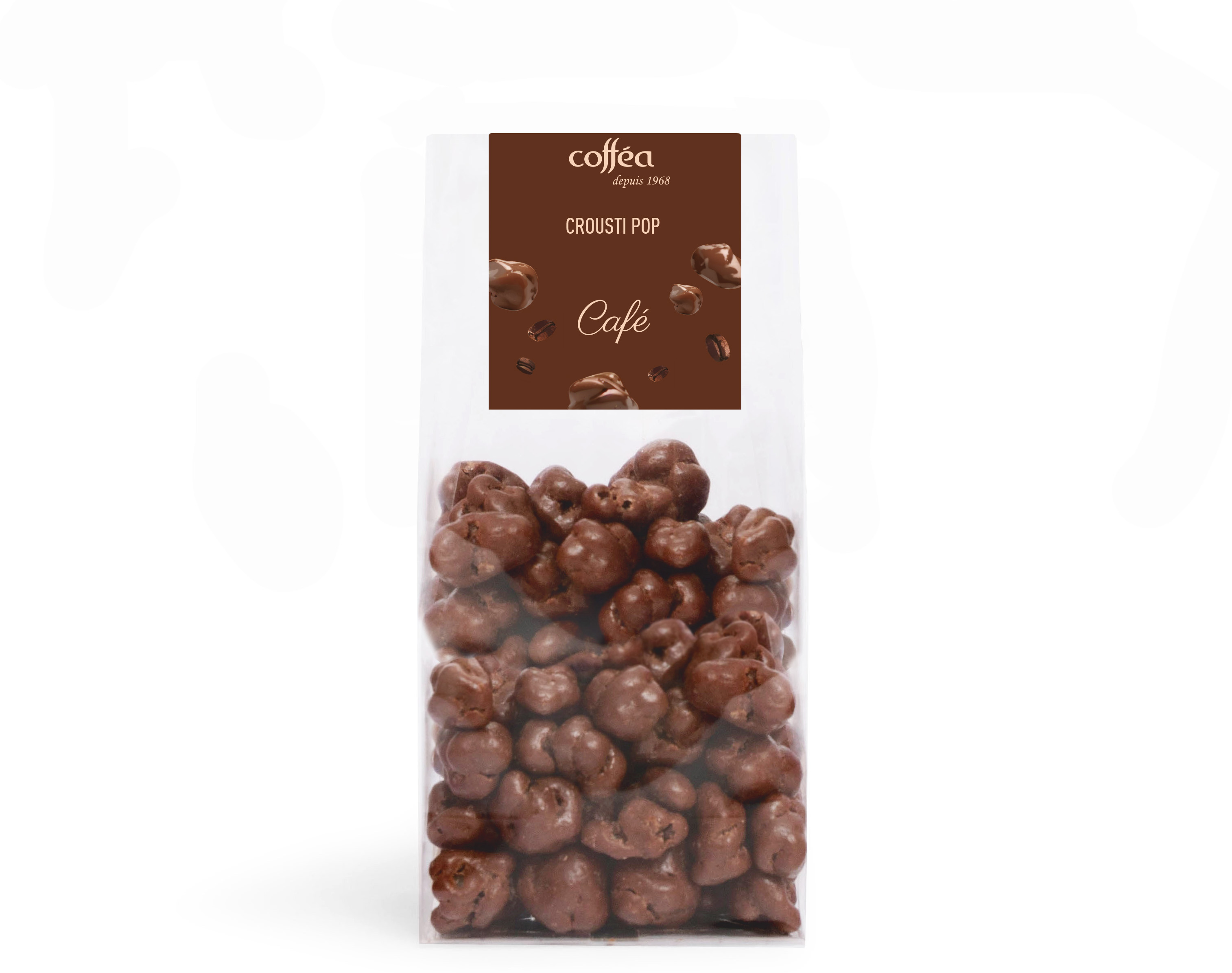 Un en-cas irrésistible pour les amateurs de café et de croustillant. Les Crousti pop « Café » marient la force aromatique du café à la légèreté du riz soufflé, le tout délicatement enrobé de chocolat blanc fondant. Chaque bouchée est un jeu de contrastes : croquant à l’extérieur, tendre et doux à l’intérieur.