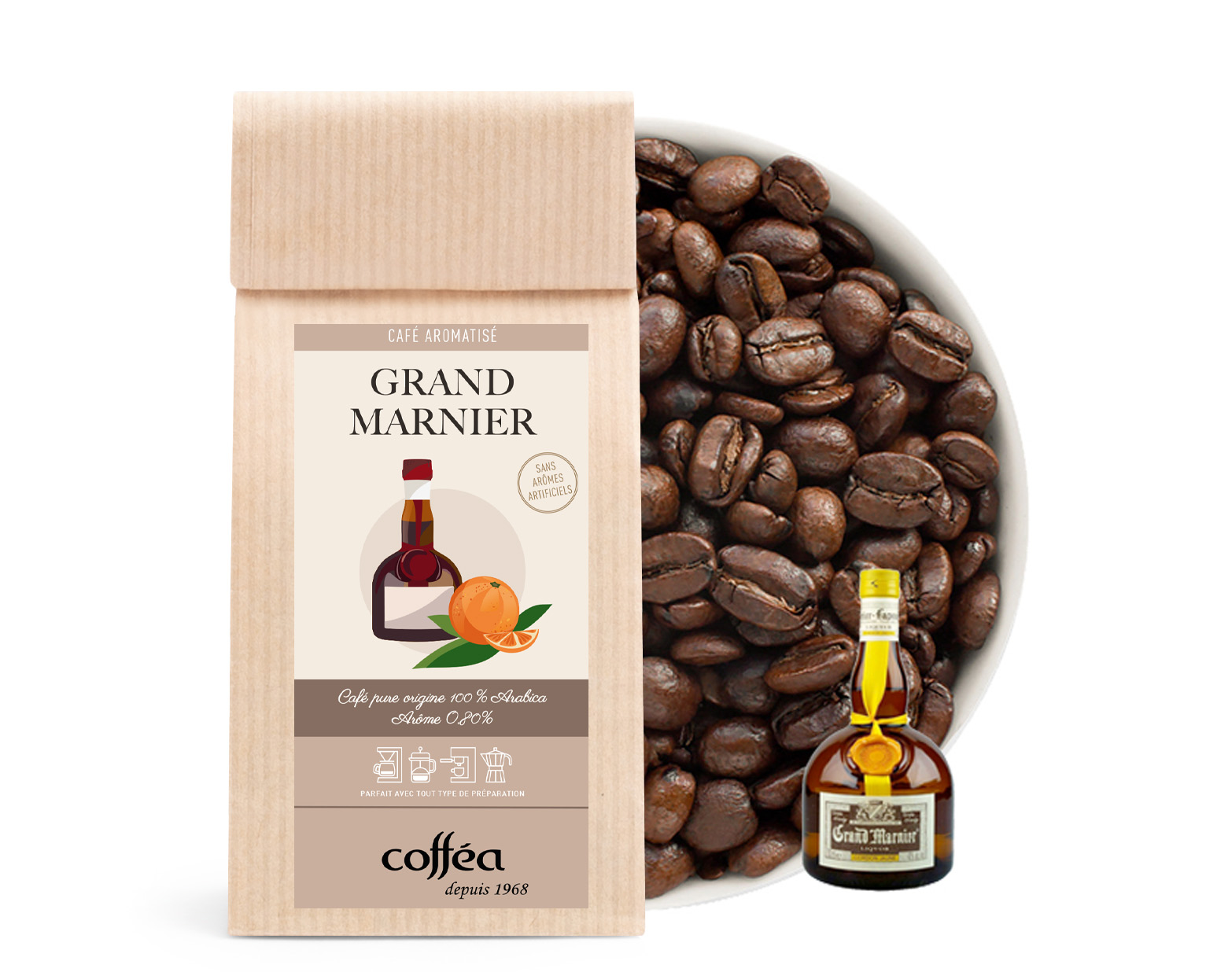 Dans le goût de la boisson, la force du café se marie harmonieusement avec des nuances de cognac vieilli et d’oranges des Caraïbes. La liqueur originale, qui a inspiré la société belge CoffeeRoots à créer le café du même nom, a été créée par Louis-Alexandre Marigner en 1880. En peu de temps, cette liqueur a conquis les fans non seulement dans toute la France, mais aussi parmi la famille royale britannique.