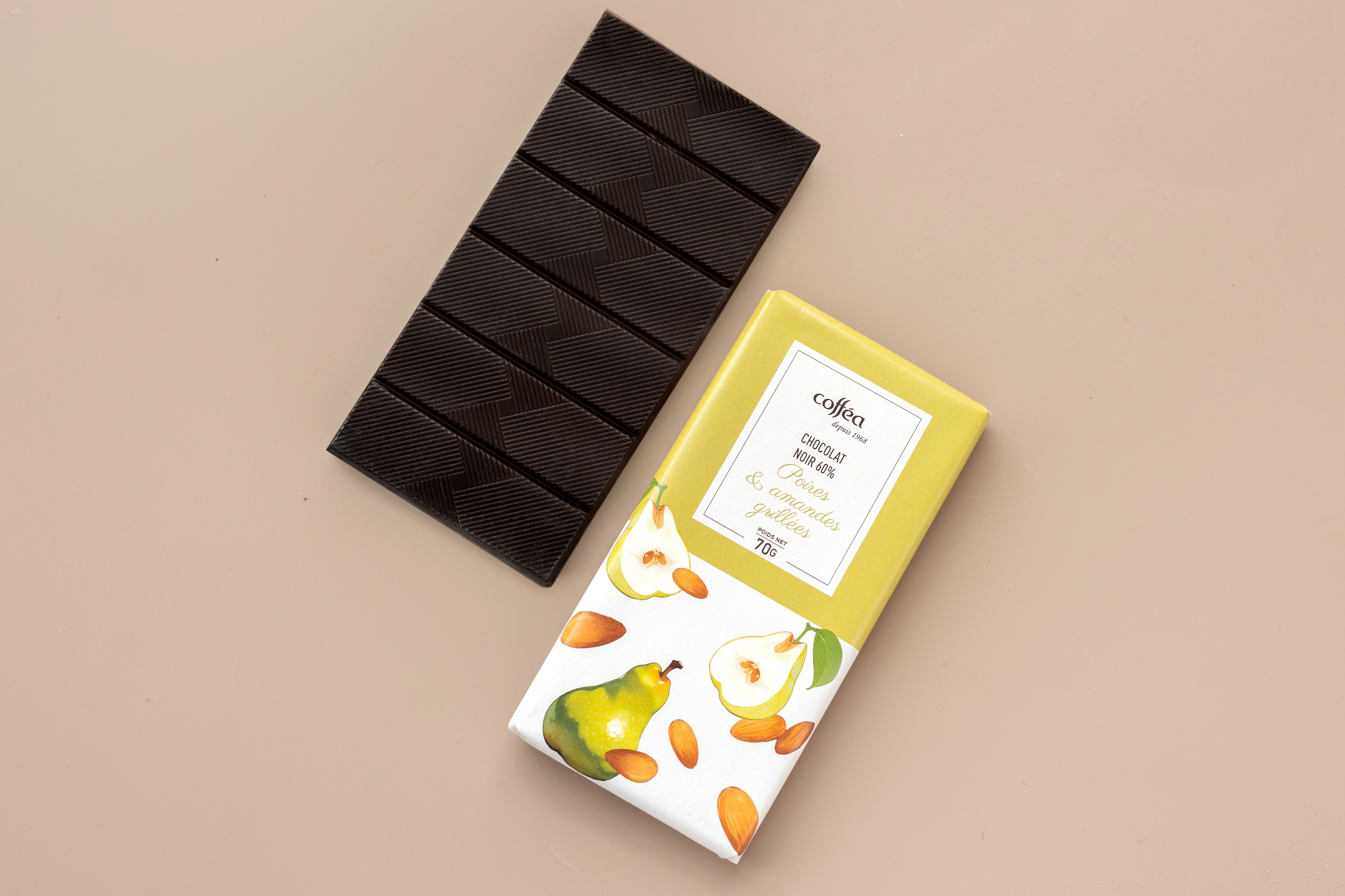 - Richesse en fibres : Grâce aux éclats de poires et aux amandes, cette tablette offre un bon apport en fibres.