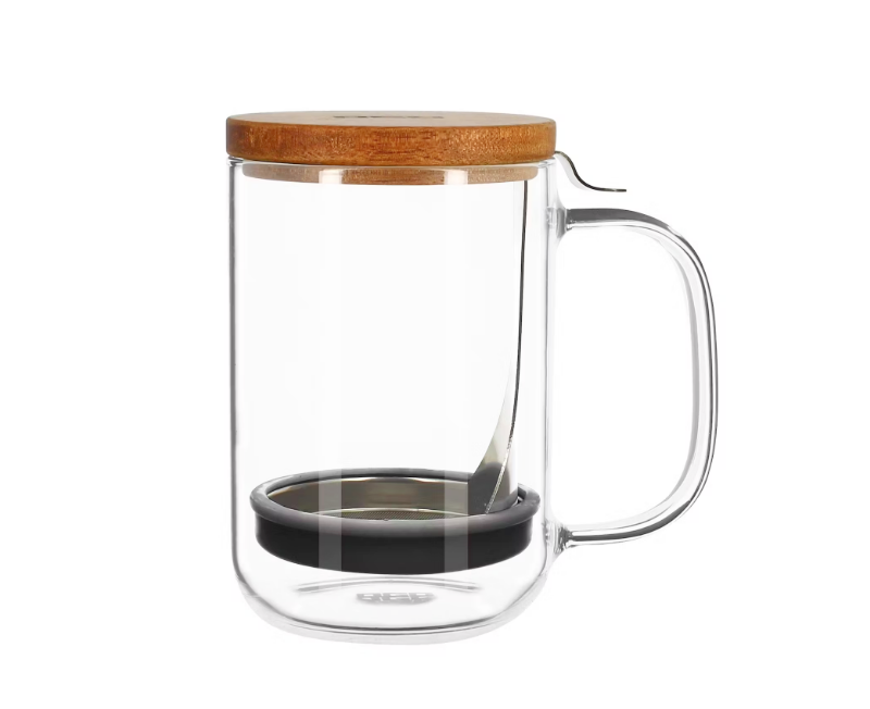 Mug café press verre couvercle bois 450ml