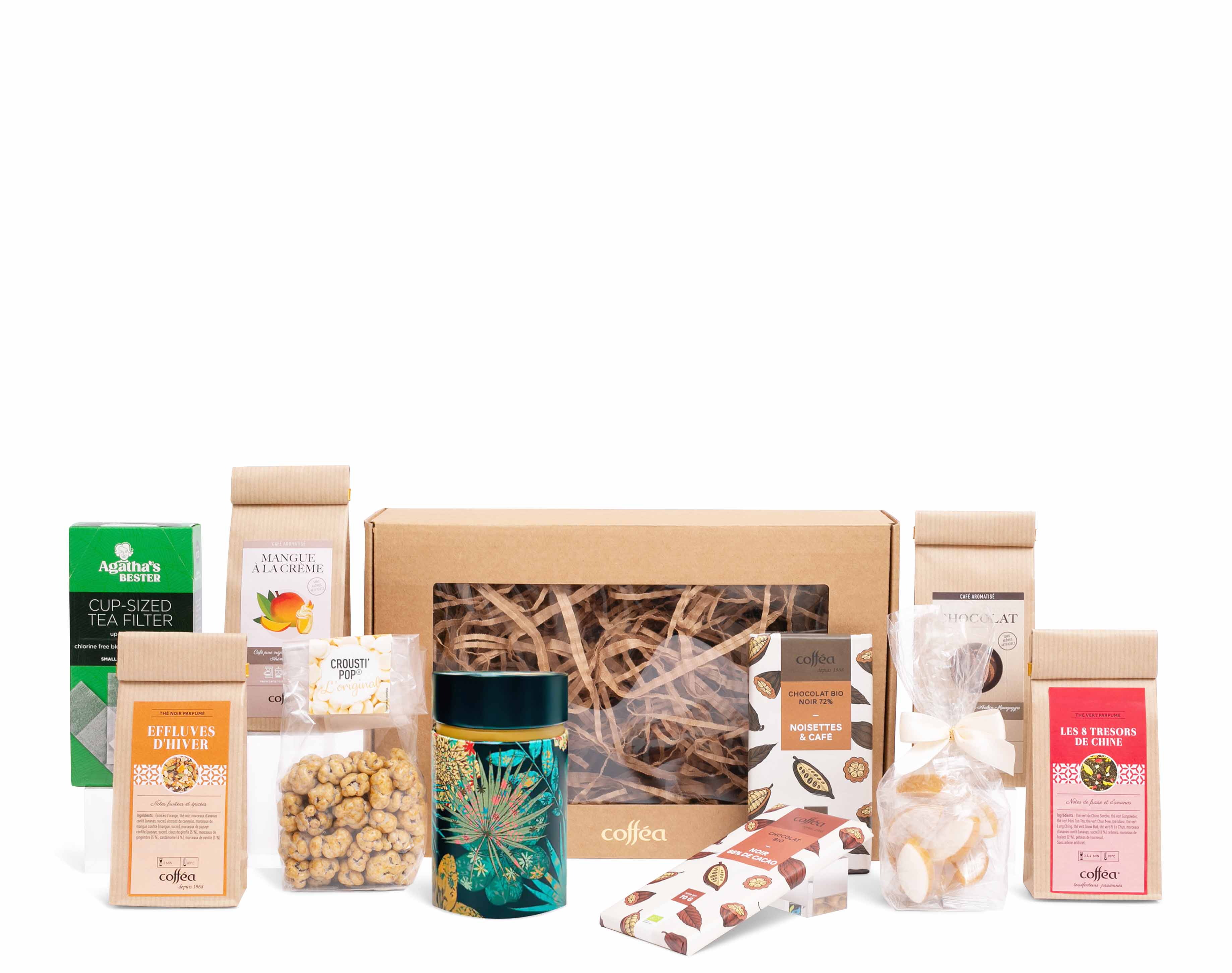 Le coffret cadeau que nous vous proposons est indispensable pour une soirée cocooning d’automne. Deux cafés, deux thés, des desserts assortis, de pratiques sachets filtrants. Cette combinaison plaira à tout le monde. Cet automne sera le plus délicieux!