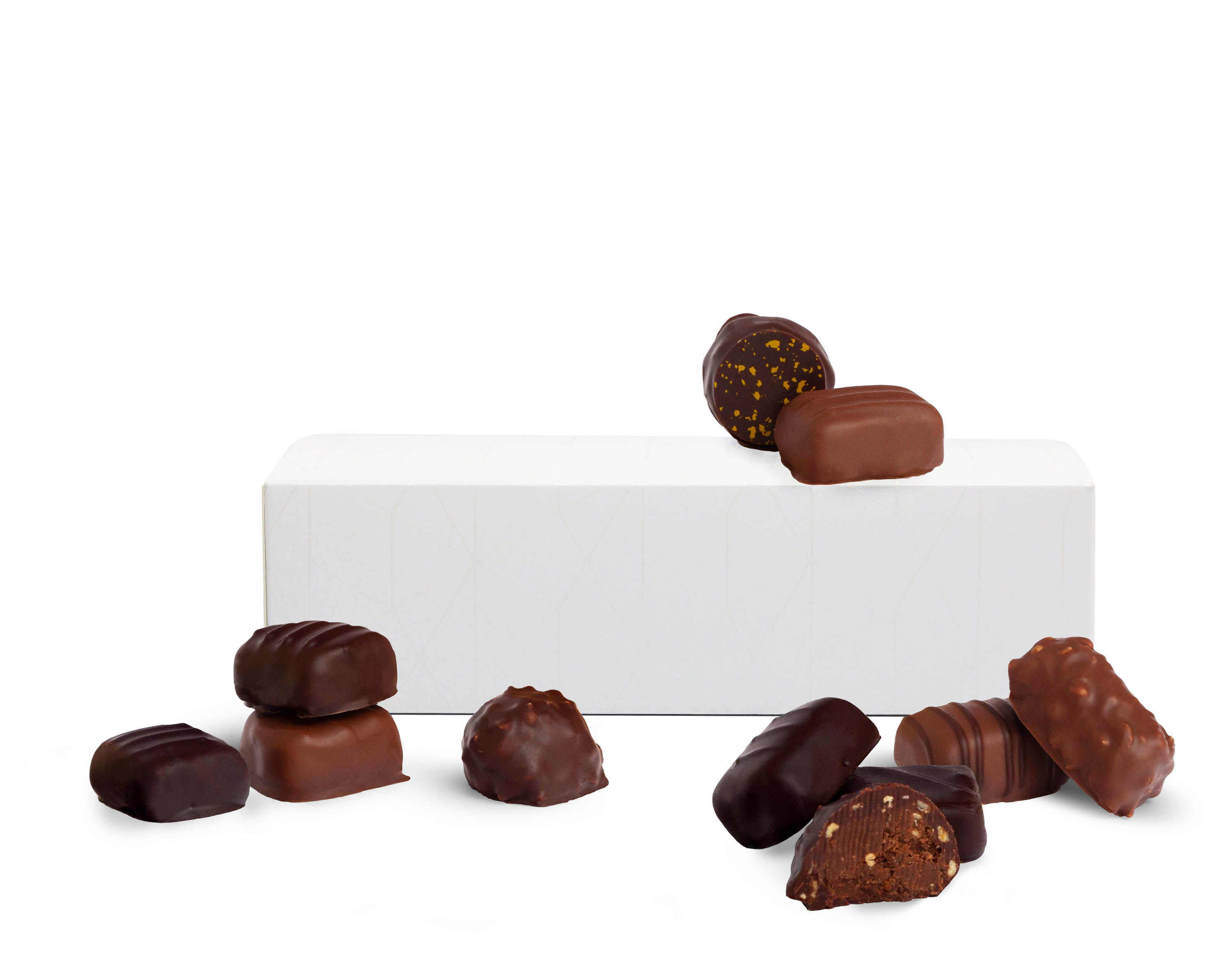 Un écrin élégant qui renferme un assortiment raffiné de chocolats artisanaux. Chaque bouchée est une invitation à la gourmandise, avec des textures fondantes, croquantes ou onctueuses, selon l’inspiration du maître chocolatier. Une idée cadeau précieuse pour célébrer une occasion spéciale ou tout simplement se faire plaisir avec une sélection de douceurs d’exception.