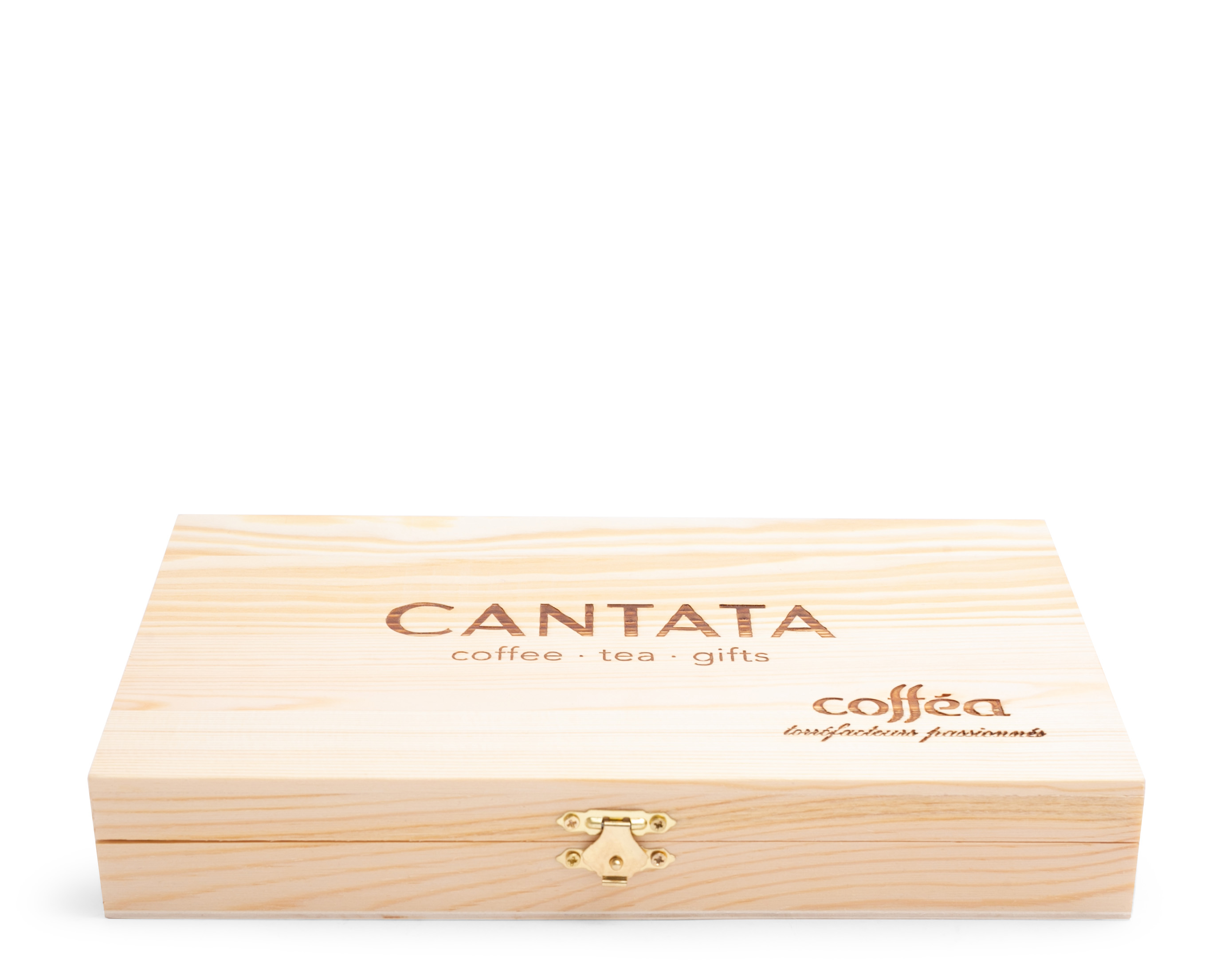 Boite cadeau bois Cantata/Coffea+fioles en verre*10