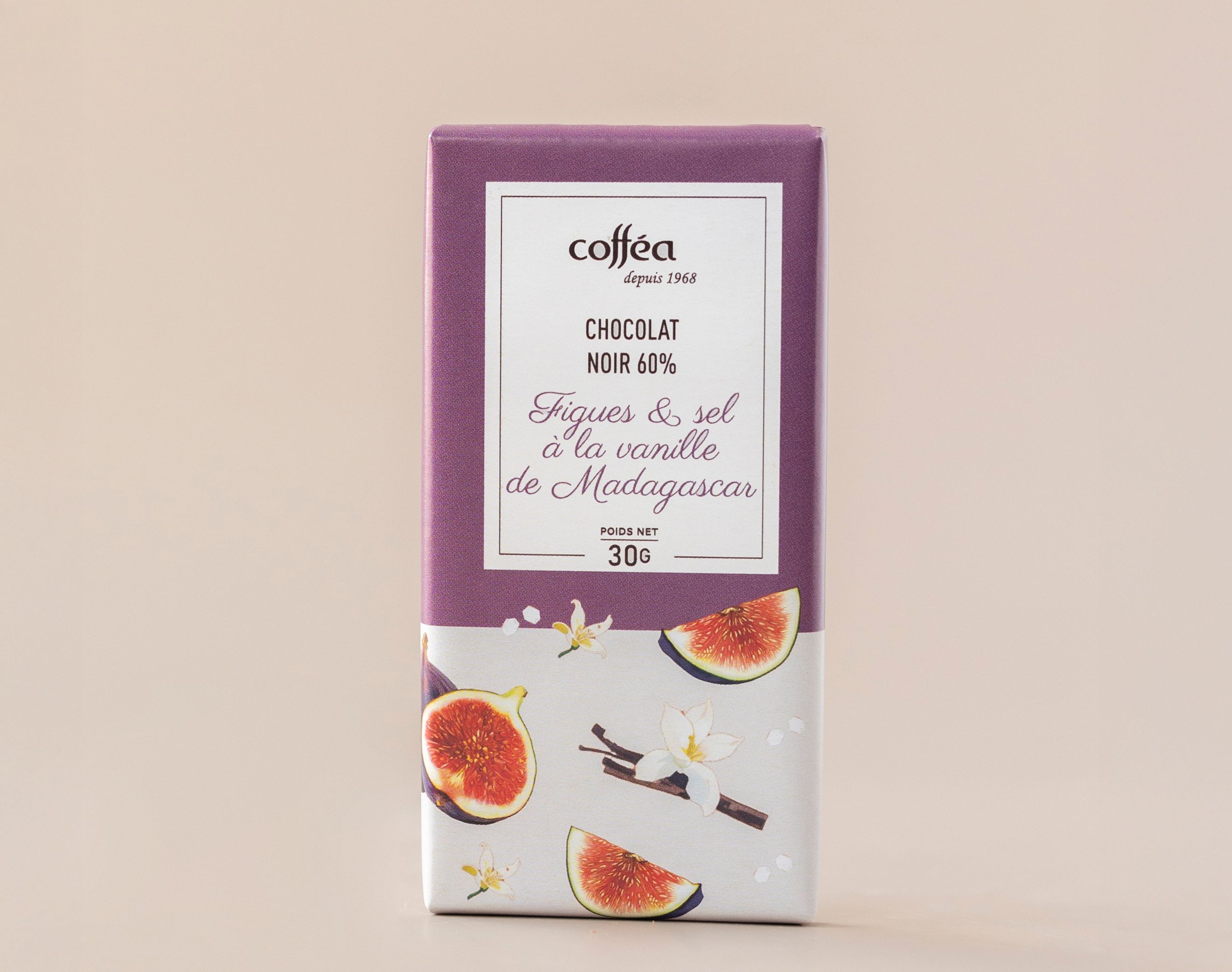 La texture fondante du chocolat contraste avec les éclats tendres de figue, tandis que la vanille apporte une touche délicatement parfumée. Idéale pour une pause gourmande ou pour accompagner un thé noir ou un verre de vin doux naturel.