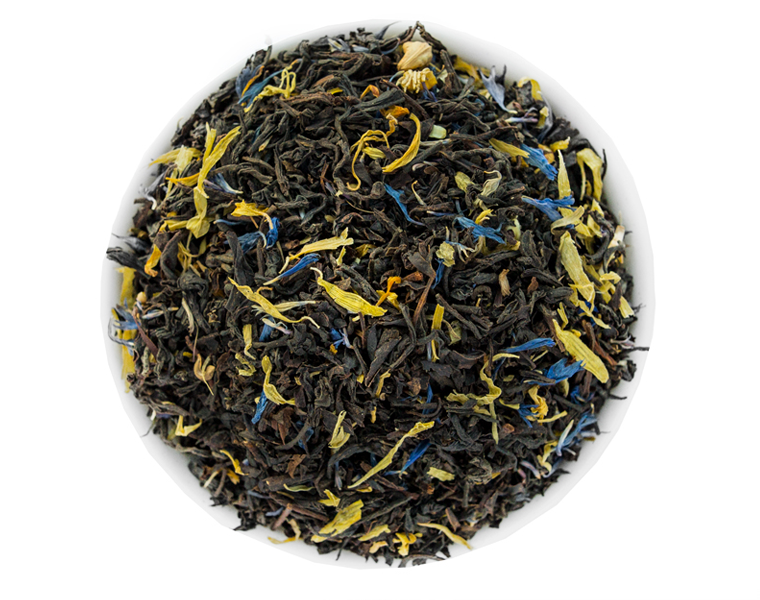 Ingrédients : Thé noir, arômes (bergamote et autres arômes), pétales de bleuet, pétales de souci.