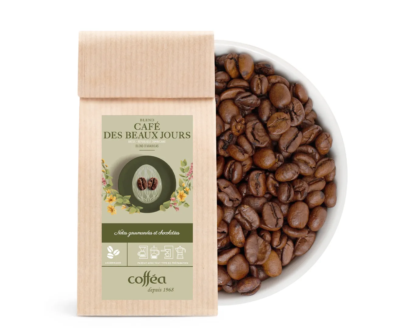 Le Café des Beaux Jours est un blend harmonieux de cafés 100 % Arabica, imaginé pour offrir une tasse gourmande, douce et parfaitement équilibrée.
