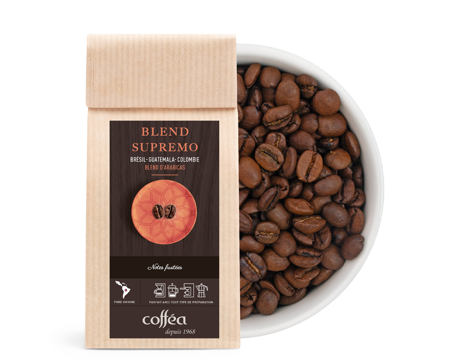Parfaitement polyvalent, le Blend Supremo révèle tout son potentiel quelle que soit la méthode d’extraction : espresso, filtre, piston ou italienne.