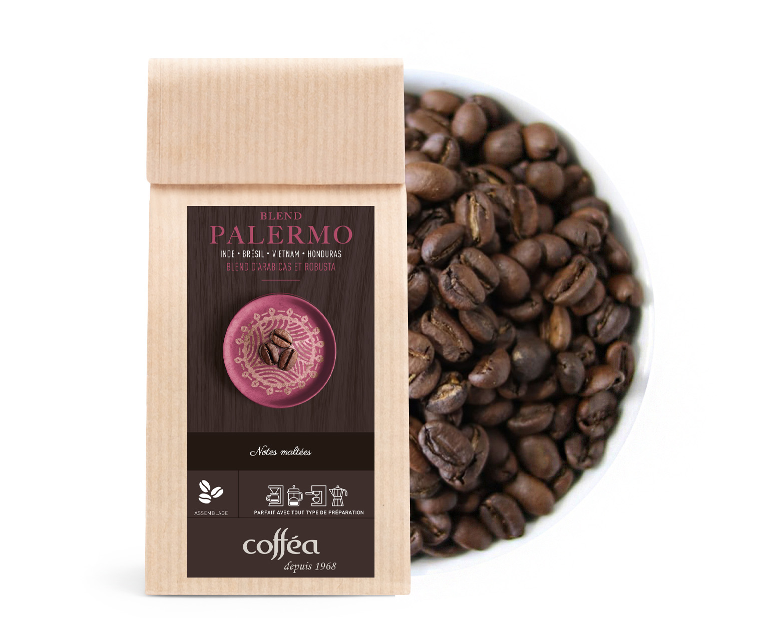 Le Café Blend Palermo est un café corsé, offrant un nez malté suivi d’une attaque significative. En bouche, il dévoile des notes de malté, de noix et de levure, le tout enveloppé dans une texture ronde et agréable. Sa longueur courte et enveloppante fait de ce café une expérience riche mais douce.