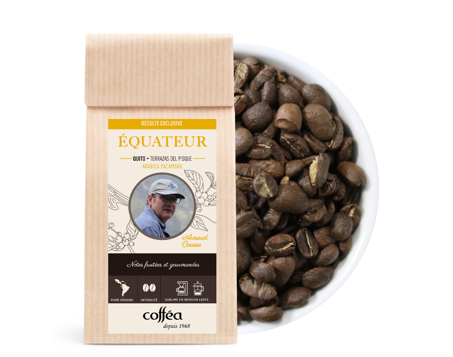Un café fruité et gourmand provenant des hauteurs de l'Équateur, offrant des notes équilibrées et une complexité unique grâce à l'exclusivité de la récolte Pacamara.