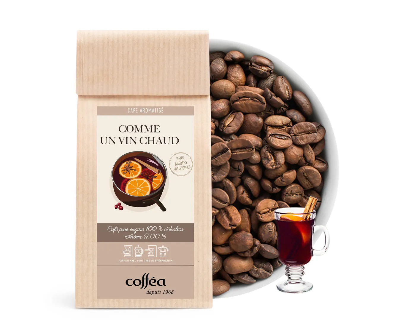 Le Café Grains "Comme un Vin Chaud" est une invitation à l’évasion hivernale. Inspiré par les saveurs des fêtes, ce mélange aromatique et réconfortant transforme chaque tasse en un moment de douceur et de convivialité.