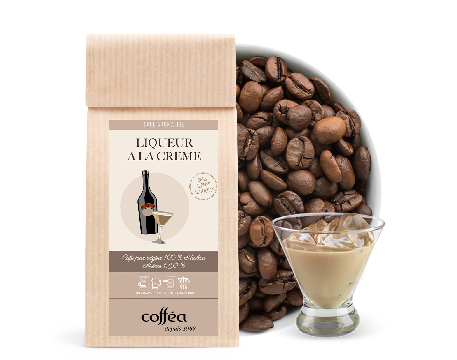 Le Café Grains Aromatisé Liqueur à la Crème vous plonge dans une nouvelle interprétation du cocktail Irish Cream, alliant la richesse du whisky irlandais et la douceur du chocolat noir et de la crème. L'amertume caractéristique du Robusta indonésien, avec sa légère astringence, équilibre le goût pour un café à la fois doux et puissant. Ce café est l'allié idéal pour un petit-déjeuner énergisant, grâce à la forte teneur en caféine du Robusta.