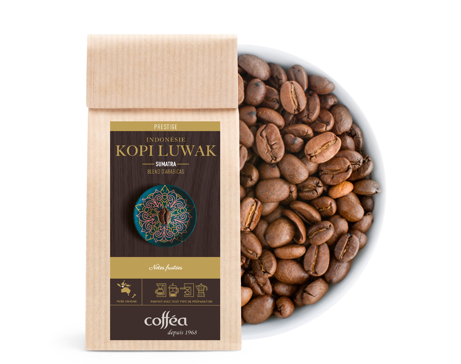 Le Kopi Luwak est réputé pour sa douceur, ses notes sucrées, et ses notes sauvages de baies noires qui émergent en tasse. Ce café est le résultat d’un processus de fermentation naturel dans le tube digestif de la civette, qui décompose les protéines et enrichit les saveurs du café. Il est donc non seulement un produit rare mais aussi un véritable voyage gustatif.