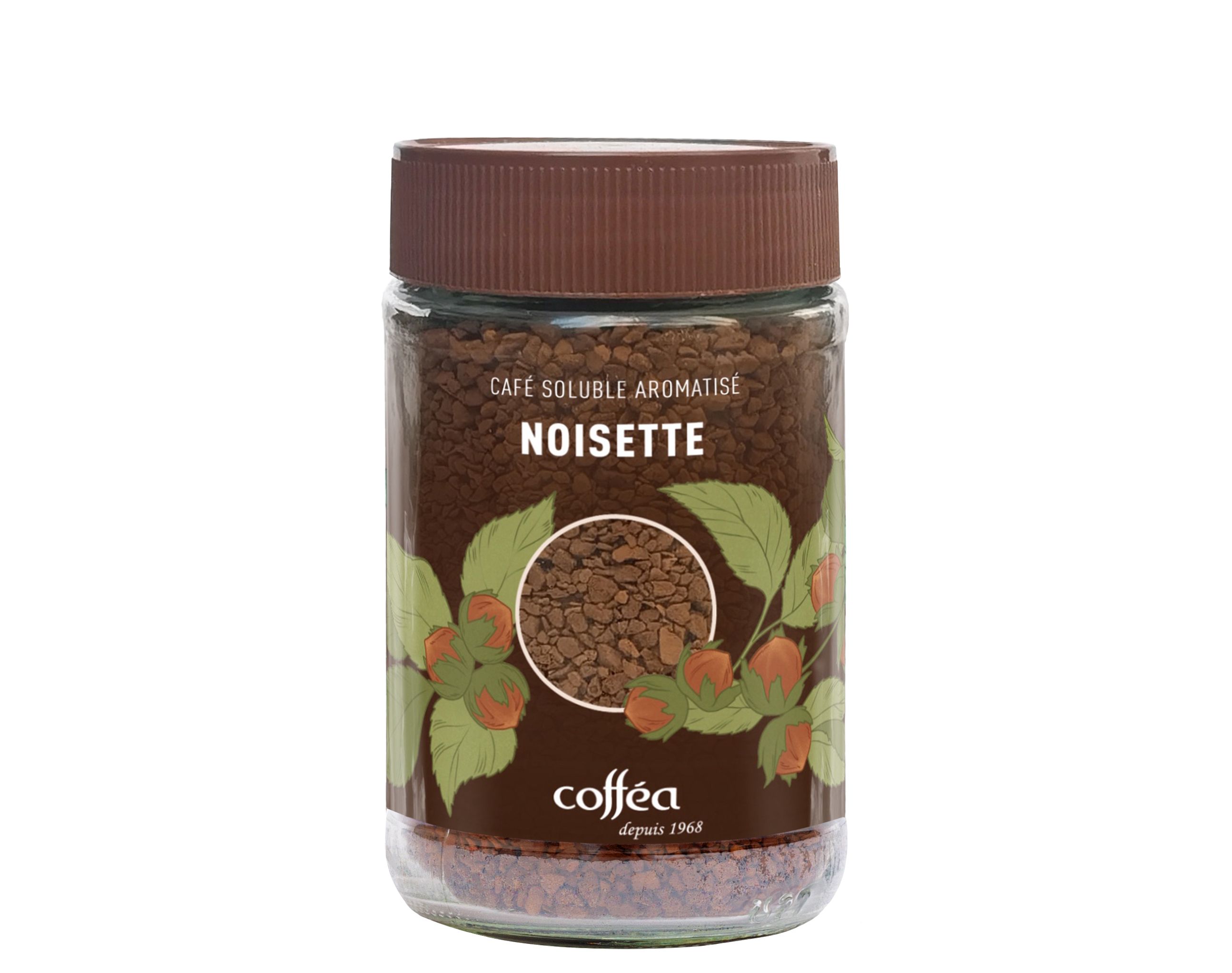 Offrez-vous une pause gourmande avec notre Café Soluble Aromatisé Noisette. Ce mélange de 95% de café lyophilisé et de 5% d’arômes naturels vous propose une tasse douce et savoureuse, sublimée par des notes subtiles de noisette.