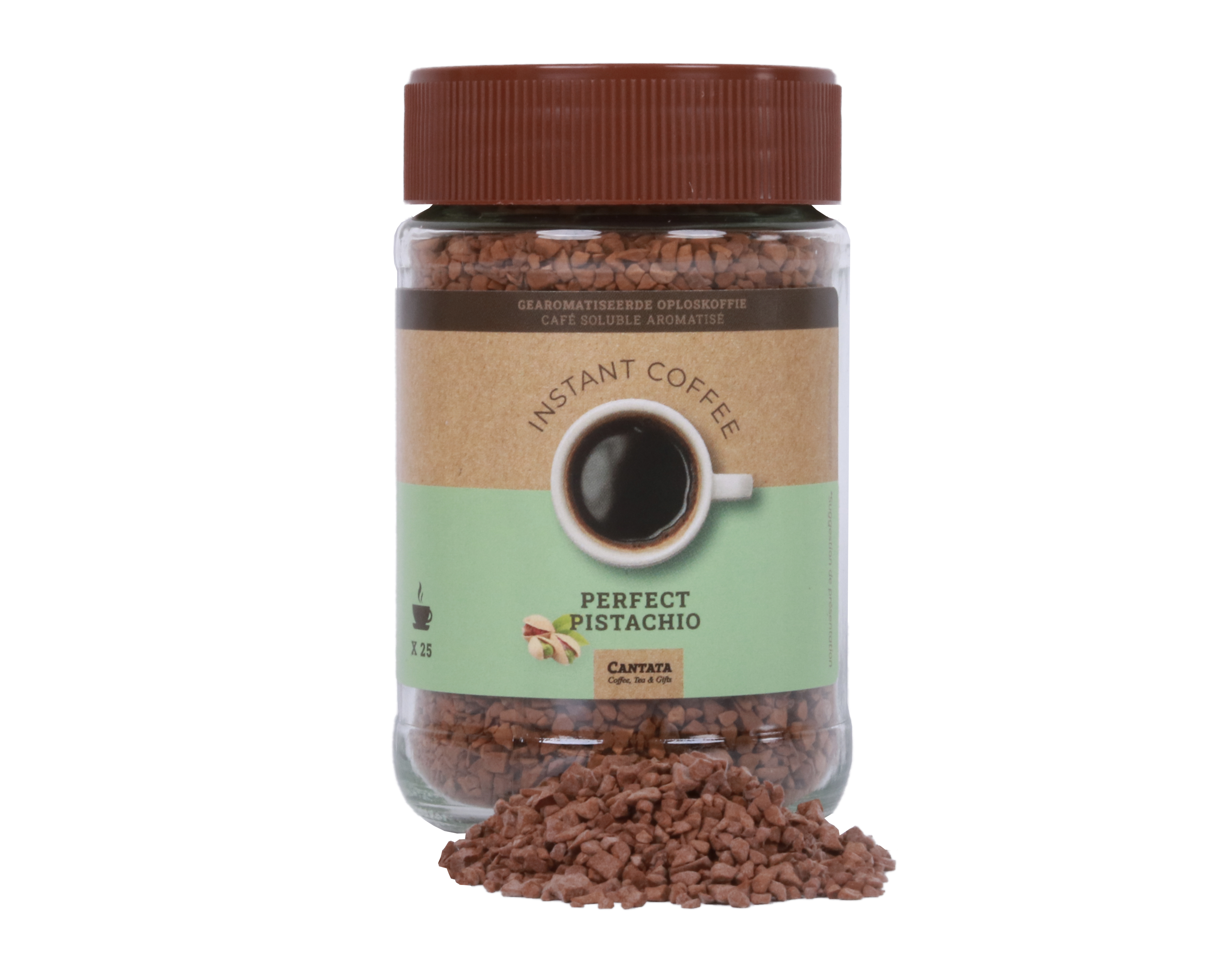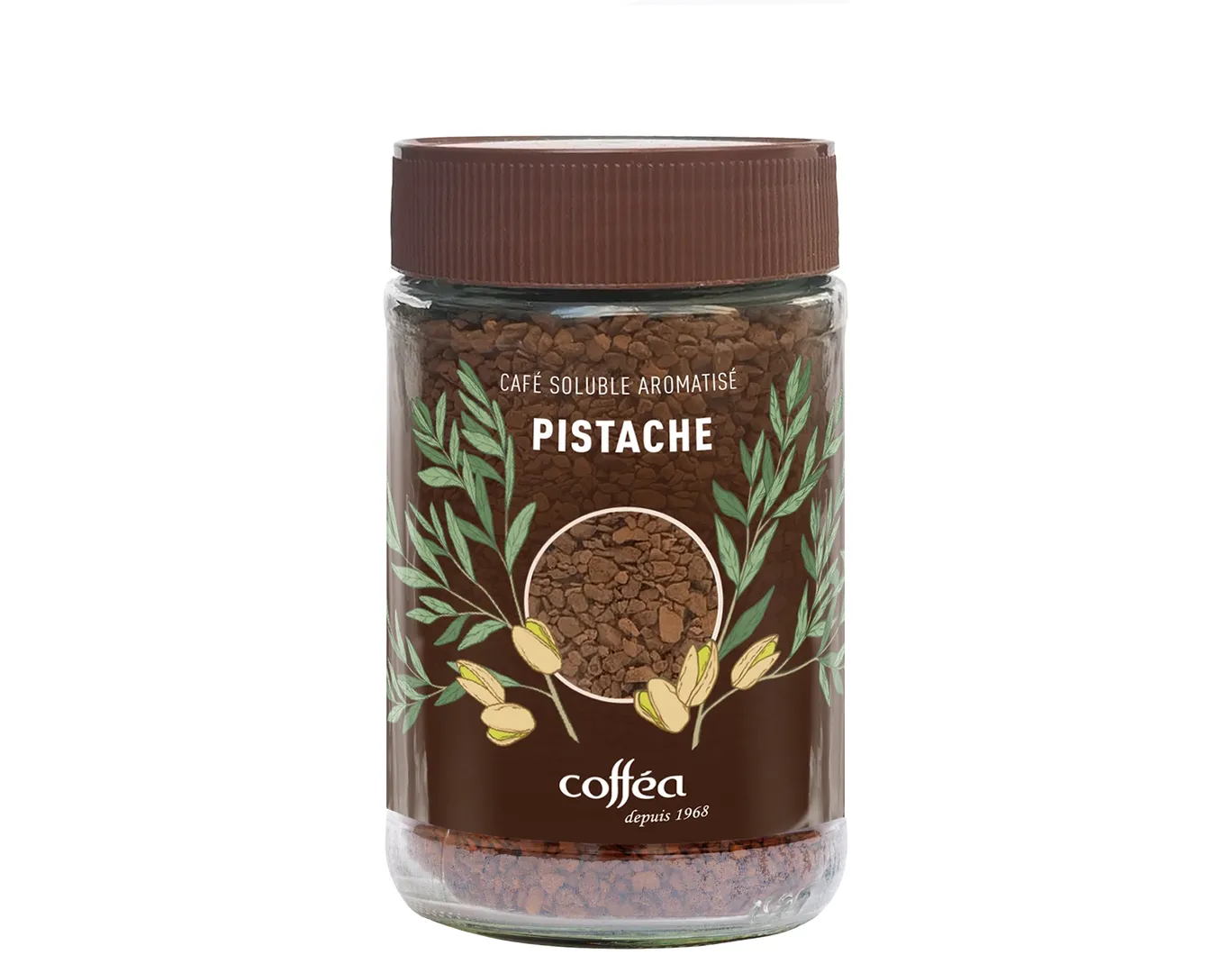 Le Café Soluble Aromatisé Pistache est une véritable invitation à la gourmandise avec son arôme épais de pistache et ses nuances délicates de noisette. Ce café instantané est fabriqué avec de l’Arabica de haute qualité provenant du Brésil et de Colombie, et offre une expérience savoureuse tant en forme pure qu'en mélange avec du lait.
