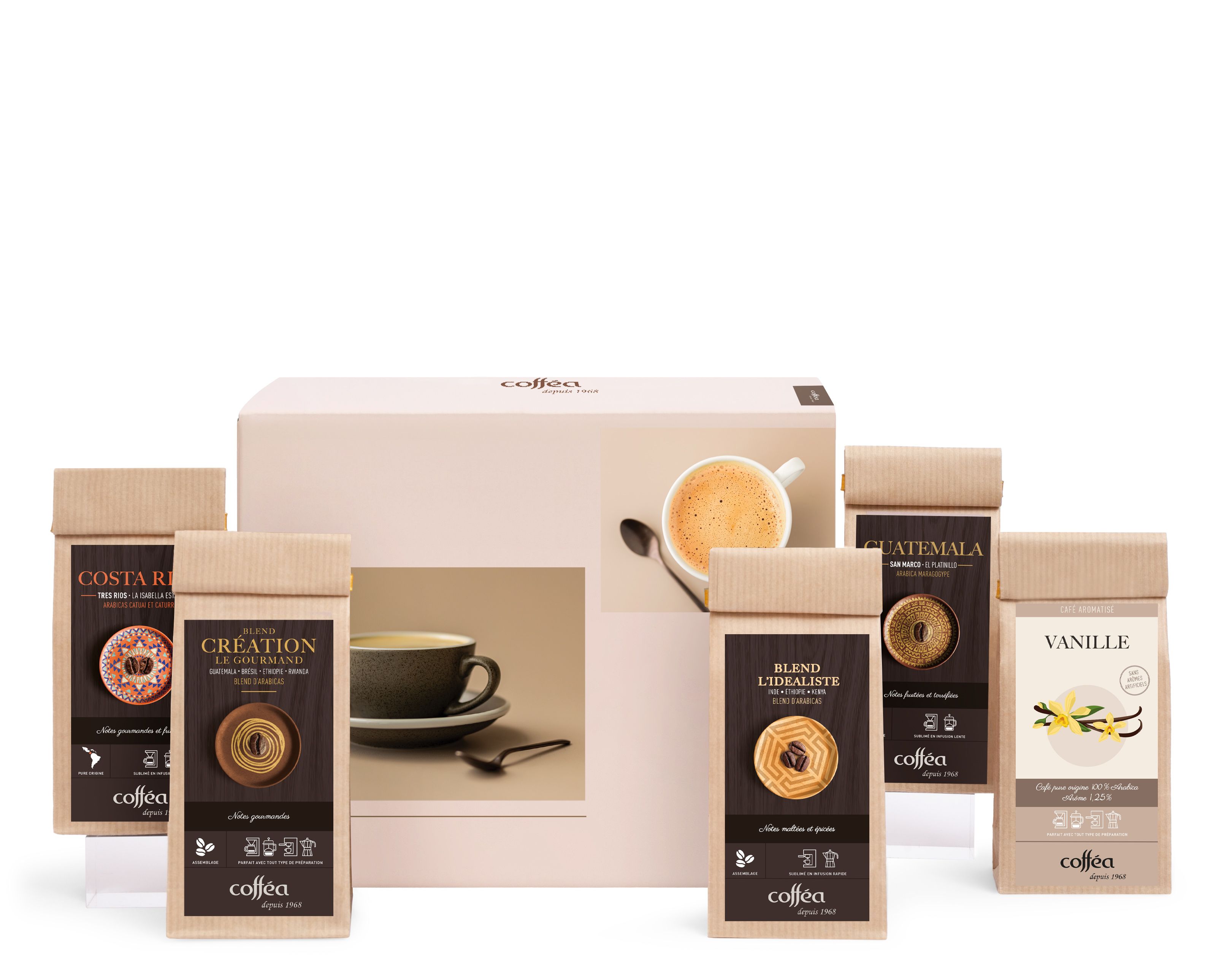 Découvrez l'art de l'expérimentation avec notre sélection exquise de cinq variétés de café soigneusement choisies. À l'intérieur de ce coffret, vous trouverez des variétés populaires qui ont enchanté nos invités pendant des années. C'est le cadeau idéal pour ceux qui recherchent l'originalité et l'excellence en matière de café. Ce coffret est une précieuse ressource pour ceux qui cherchent à offrir quelque chose de véritablement spécial ! Vous trouverez plus de détails dans le descriptif ci-dessous !