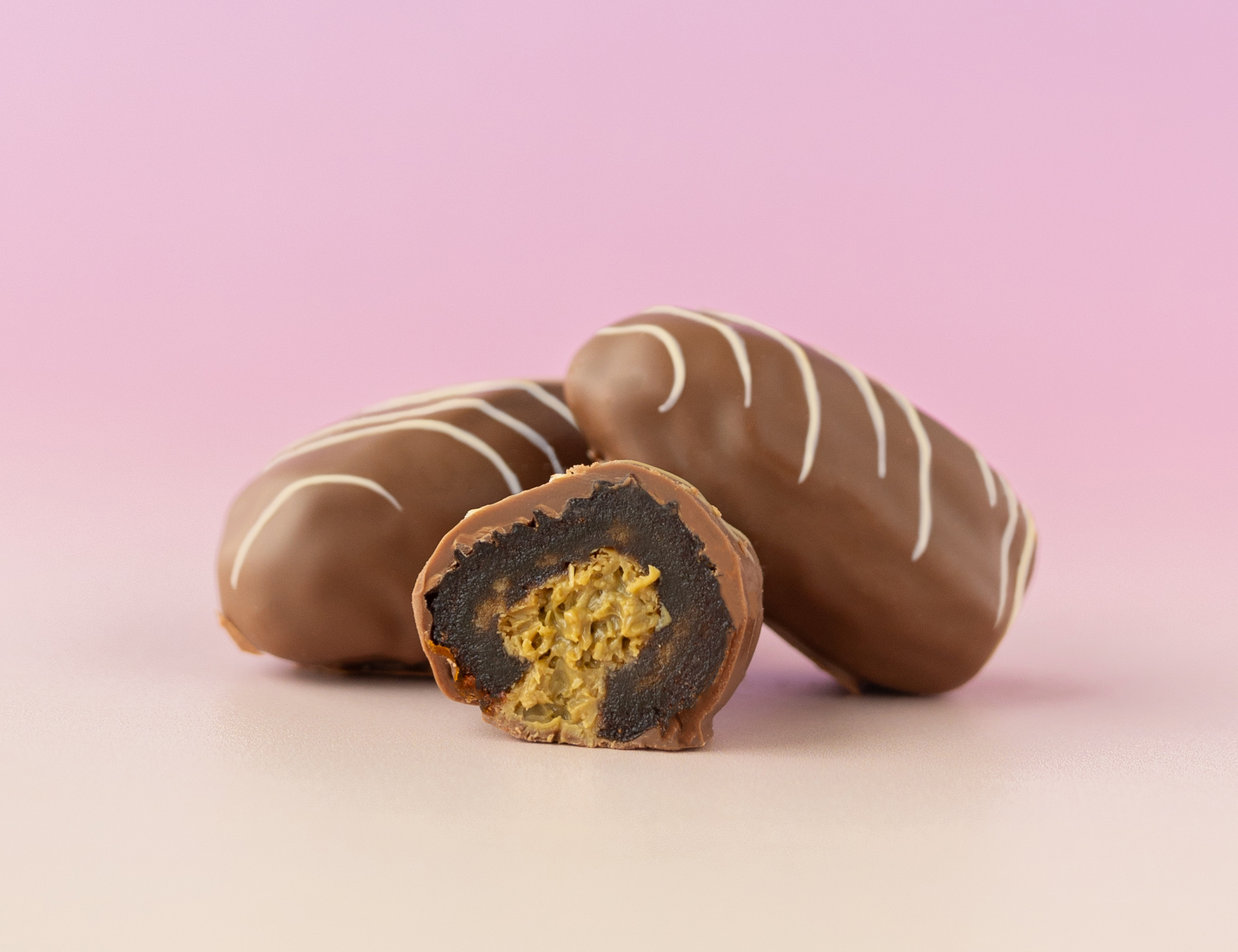 Confiserie gourmande dattes fourrées et enrobées de chocolat.