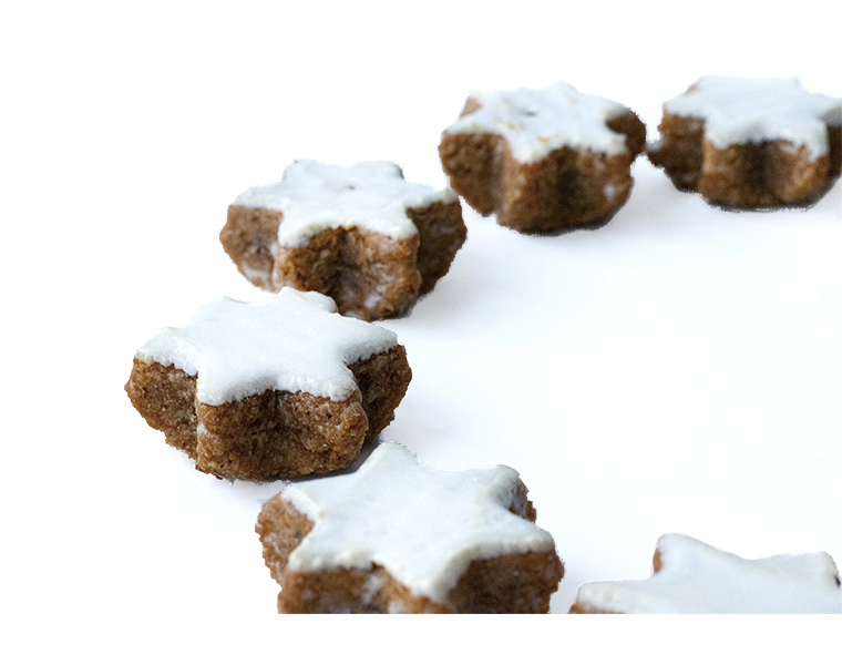 Les Étoiles à la Cannelle sont une spécialité pâtissière traditionnelle composée d’amandes finement moulues, de sucre, de noisette et d’un subtil glaçage au sucre. Le tout est délicatement relevé par une touche de cannelle et de jus de citron, pour une texture moelleuse et un goût riche en arômes.
