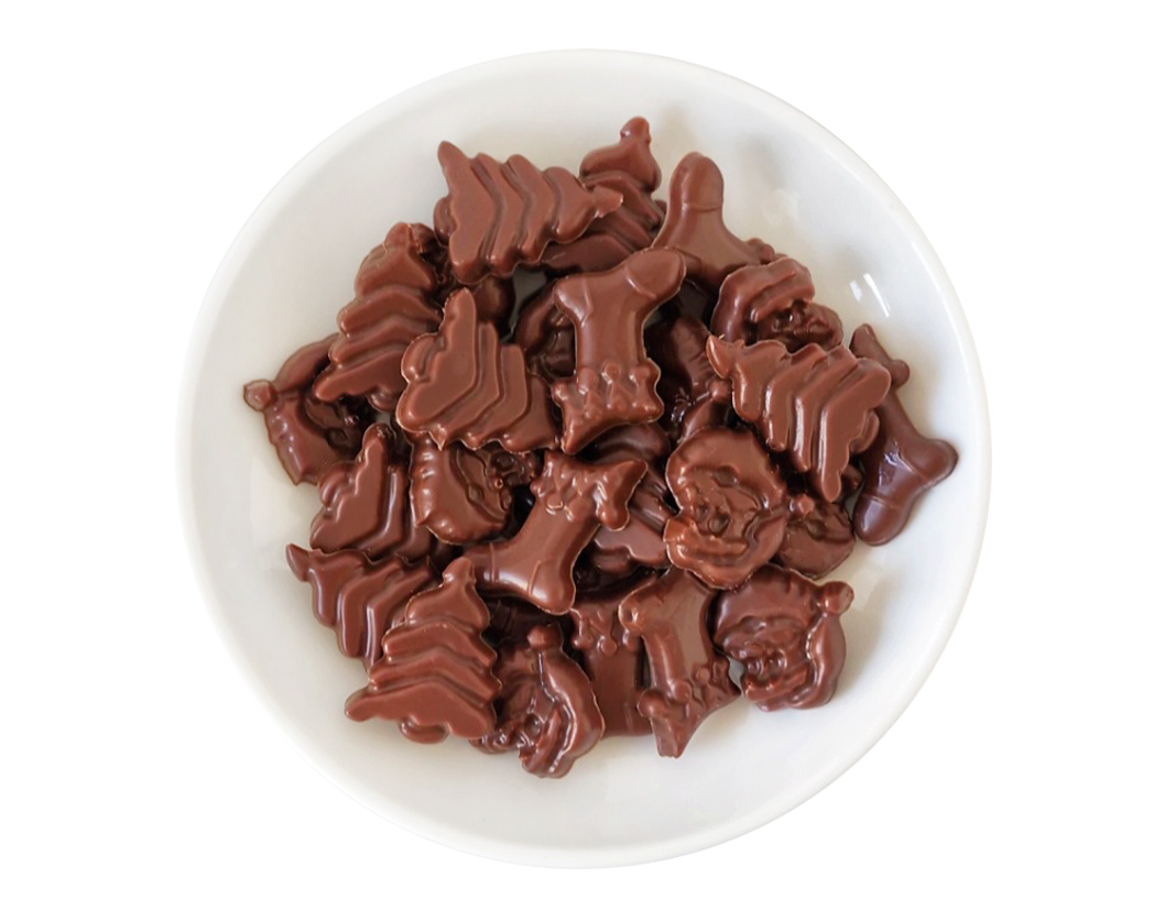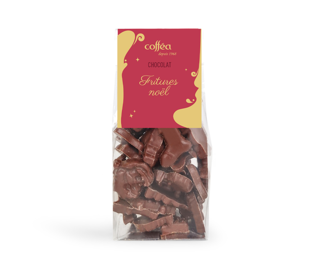 Ces fritures sont des petites pièces de chocolat, généralement en forme de sujets festifs (sapins, cloches, étoiles), idéales pour garnir les paniers cadeaux ou pour décorer les tables de fête. Elles sont proposées en chocolat au lait ou noir selon les assortiments.
