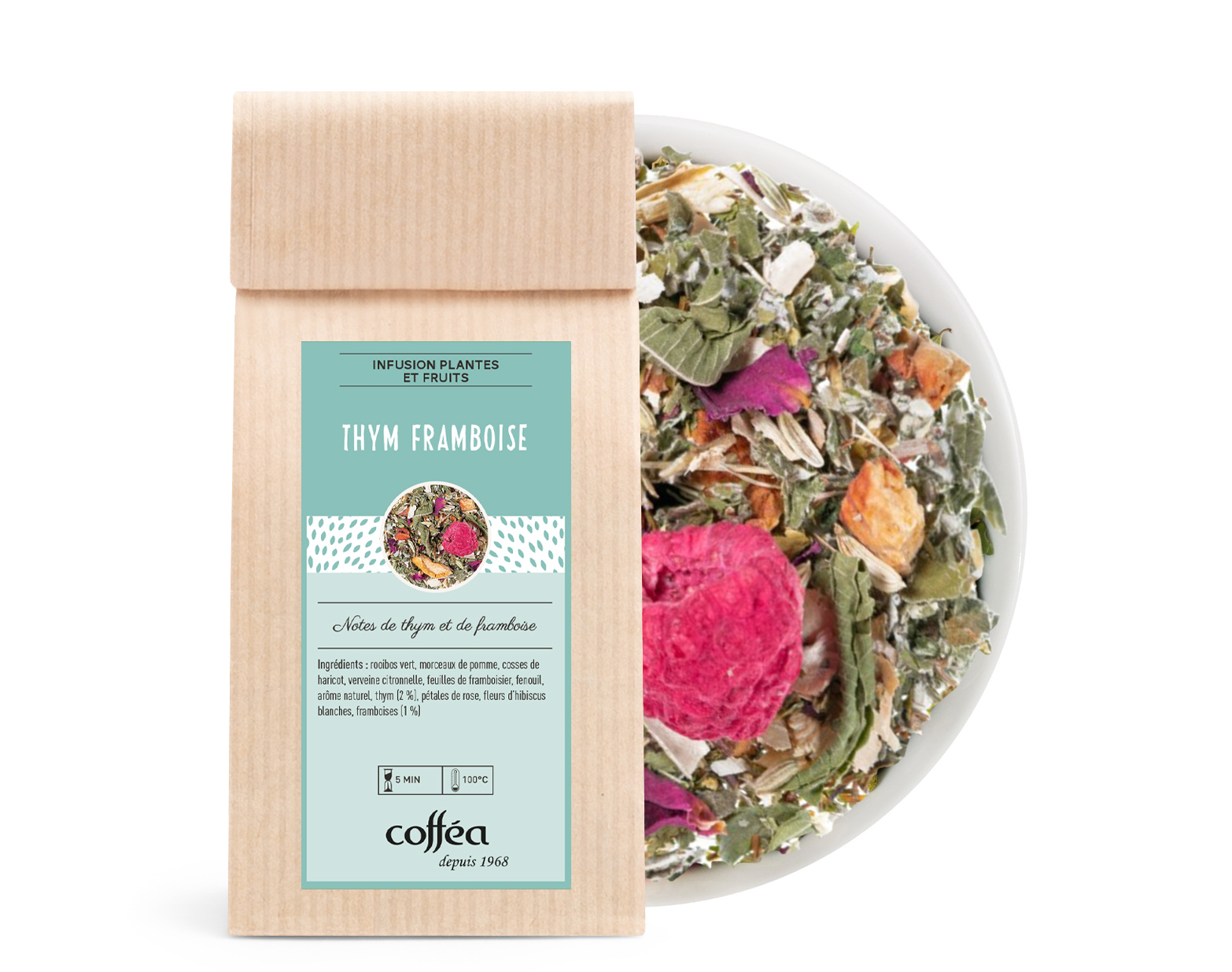 Thym framboise c’est une infusion qui soutiendra l'immunité et remontera le moral. Une belle boisson pour une soirée froide, rappelant les jours chauds, réchauffant par son arôme et apportant une humeur positive.