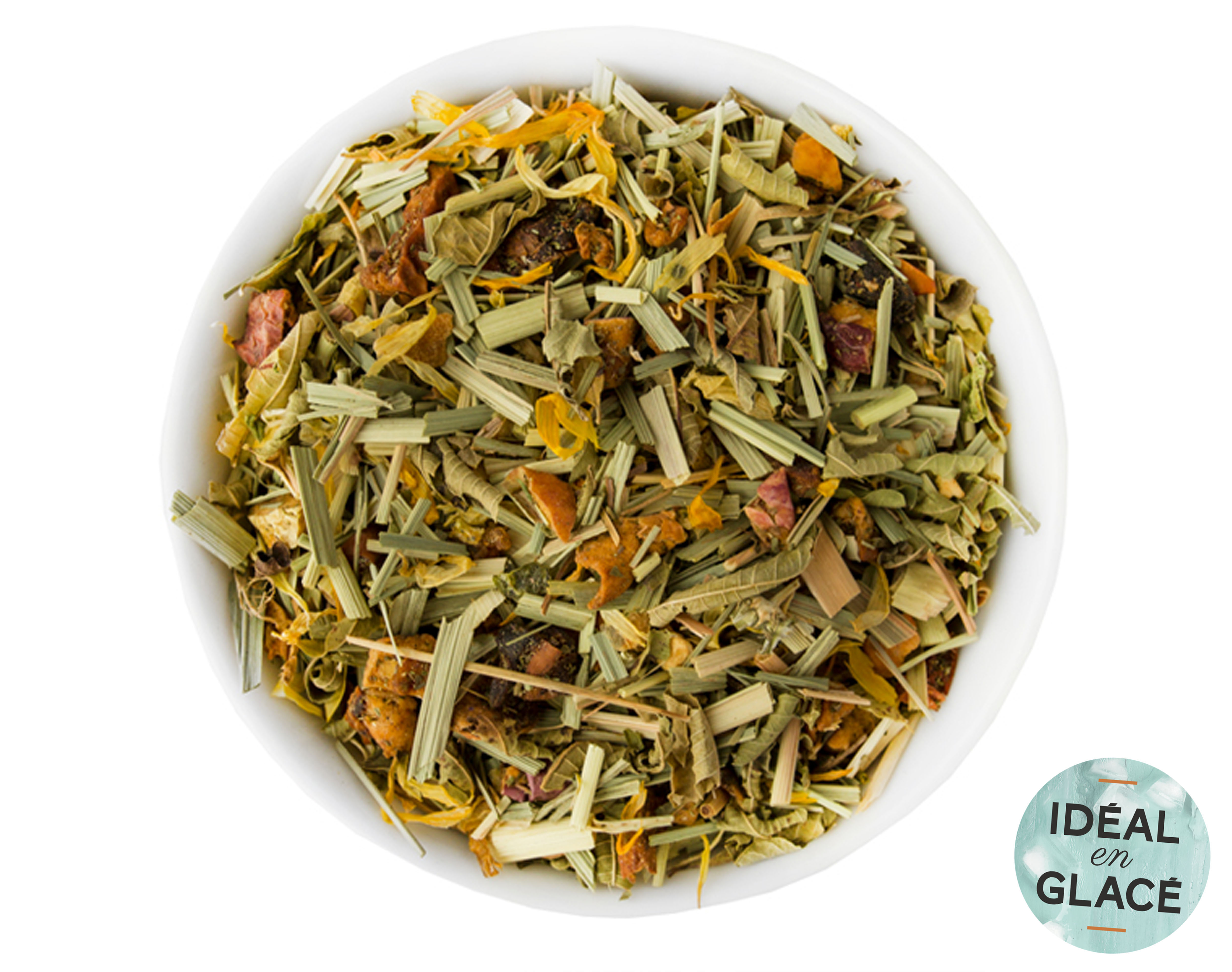 Citronnelle, morceaux de pomme, menthe nana, verveine, écorces de citron (3,5%), arômes naturels, pétales de soucis, morceaux de concombre (1%).