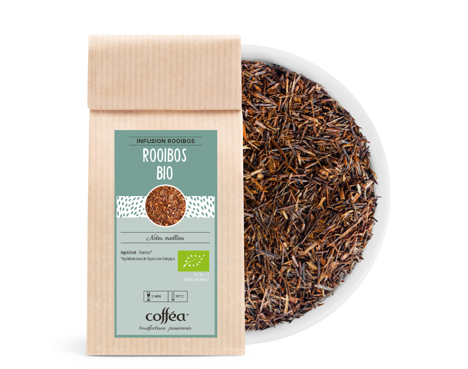 Rooibos Bio est une infusion aux saveurs douces et légèrement sucrées, issue des feuilles d’un arbuste originaire d’Afrique du Sud. Naturellement sans théine, le rooibos se caractérise par une infusion rouge cuivrée et des arômes réconfortants, proches du miel et de la noisette.