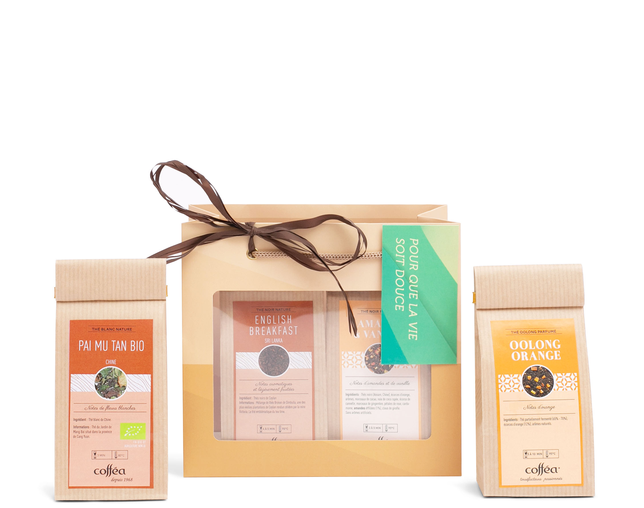 L'heure du thé est arrivée ? Cet assortiment combine plusieurs thé bienfaisants de notre collection. A boire nature ou avec du lait. Un beau sac cadeau complétera l'ensemble avec son esthétique élégante. Vous trouverez plus de détails dans le descriptif ci-dessous !