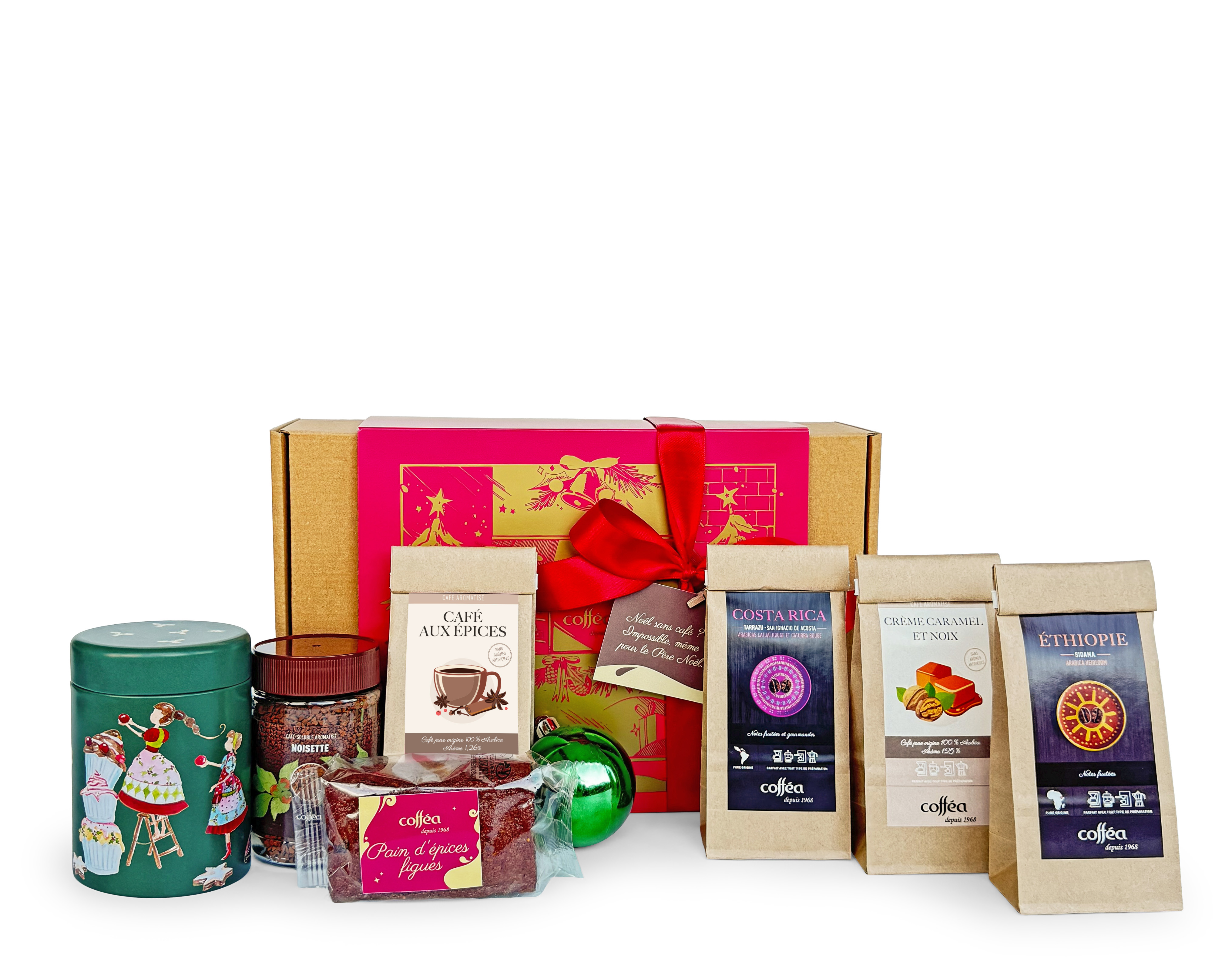 Plongez dans l’univers aromatique de Noël en grains, un coffret qui réunit l’intensité et la douceur des plus belles origines de café. De l’Éthiopie Sidamo au Costa Rica Tarrazú, chaque grain révèle un caractère unique, sublimé par les créations parfumées au pain d’épices, au caramel et à la noisette. Les boîtes de conservation festives et le pain d’épices aux figues complètent cet ensemble plein de chaleur et de raffinement.