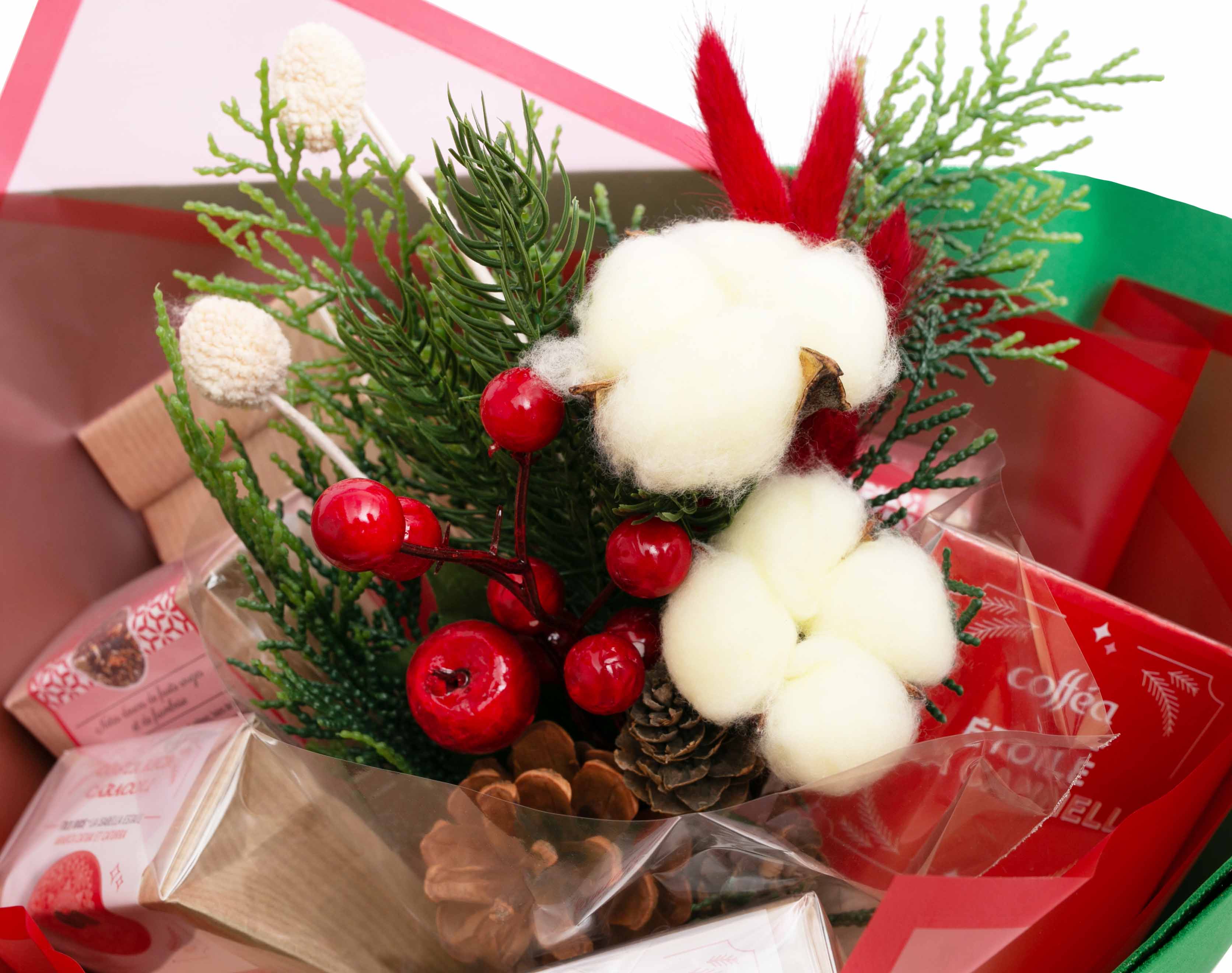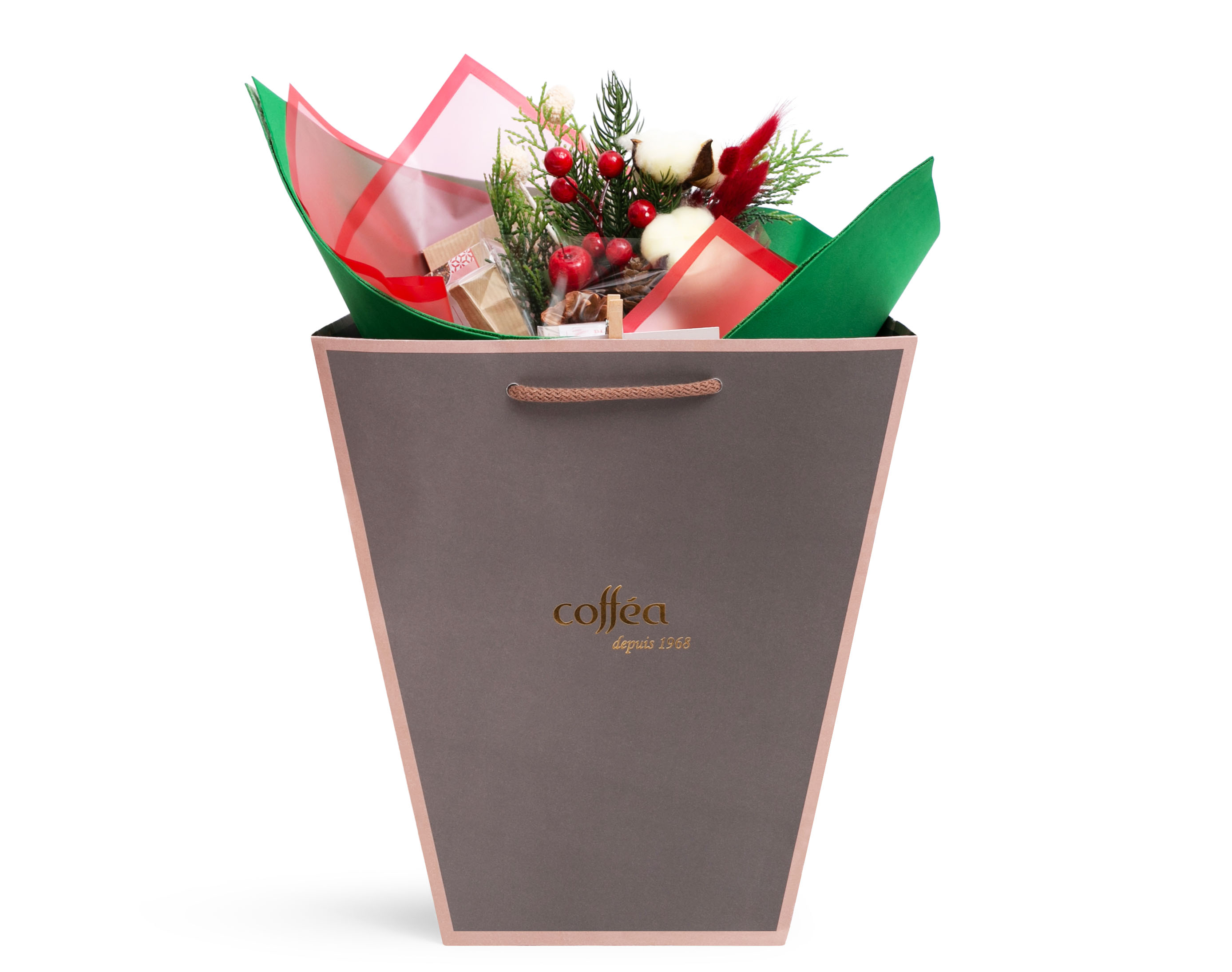 Nous avons composé ce bouquet de biscuits, trois variétés de thé et deux sortes de café, pour que les gourmets les plus exigeants en soient ravis. Ouvrir un tel cadeau, c'est comme marcher le long d'un beau sentier enneigé, découvrir des vues magnifiques et ensuite profiter de la chaleur et du confort de votre maison. Vous trouverez plus de détails dans le descriptif ci-dessous !