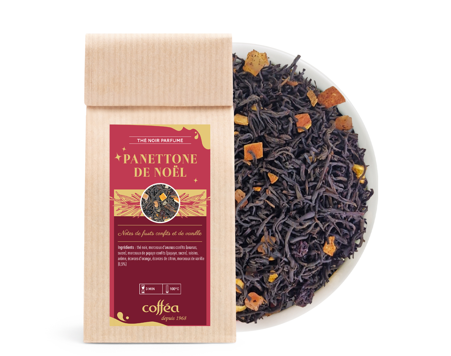 Ce thé noir évoque fidèlement le panettone milanais : un profil sucré, chaleureux, sans excès. Les fruits confits et la vanille s’intègrent naturellement à la base noire, apportant une rondeur agréable. Idéal pour les fêtes, à boire seul ou avec une part de panettone.