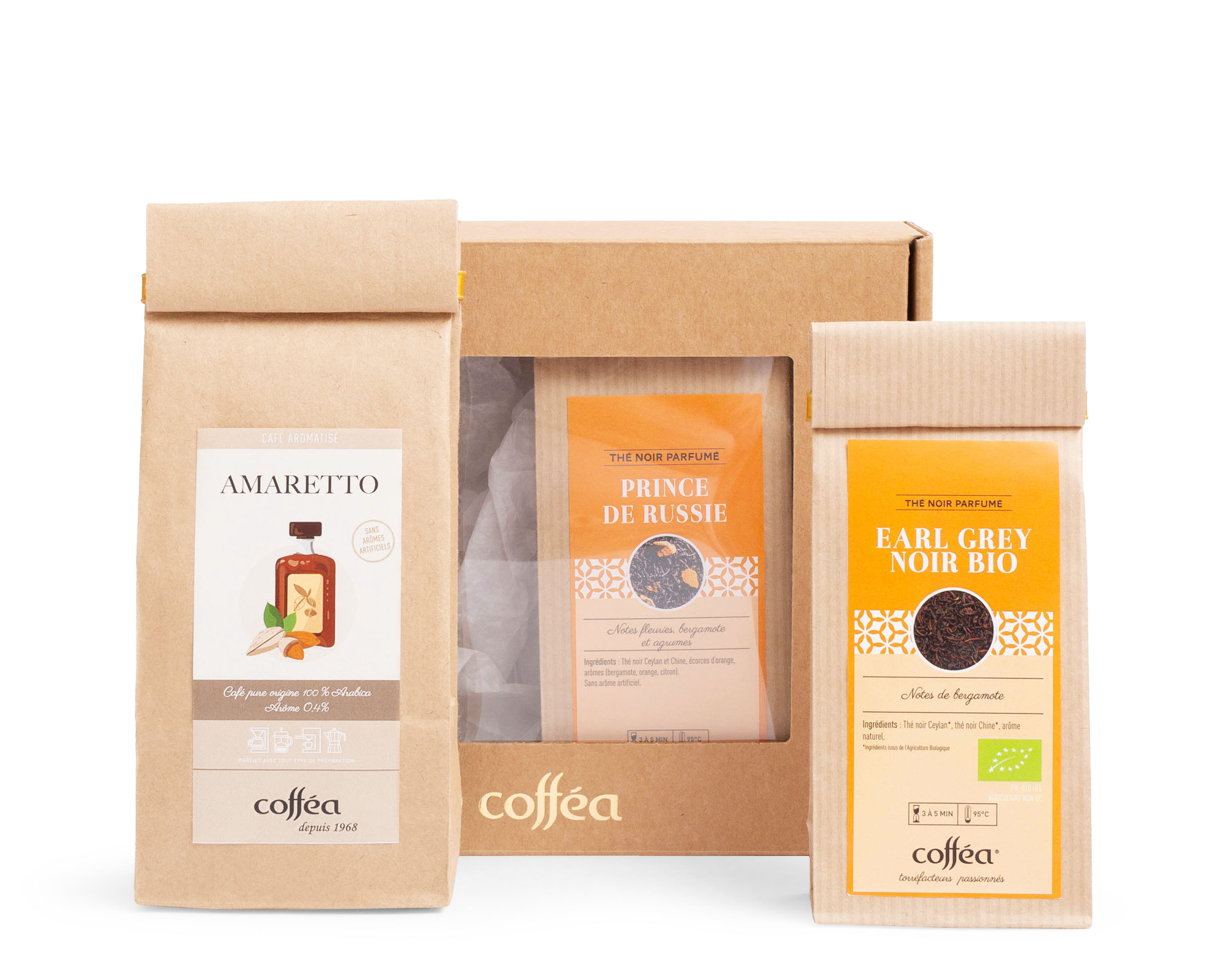 Thé et café pour passer des moments agréables seul ou en compagnie de vos proches. Ce coffret design contient deux variétés de thé et un café. Il sera bienvenu pour toutes les occasions.