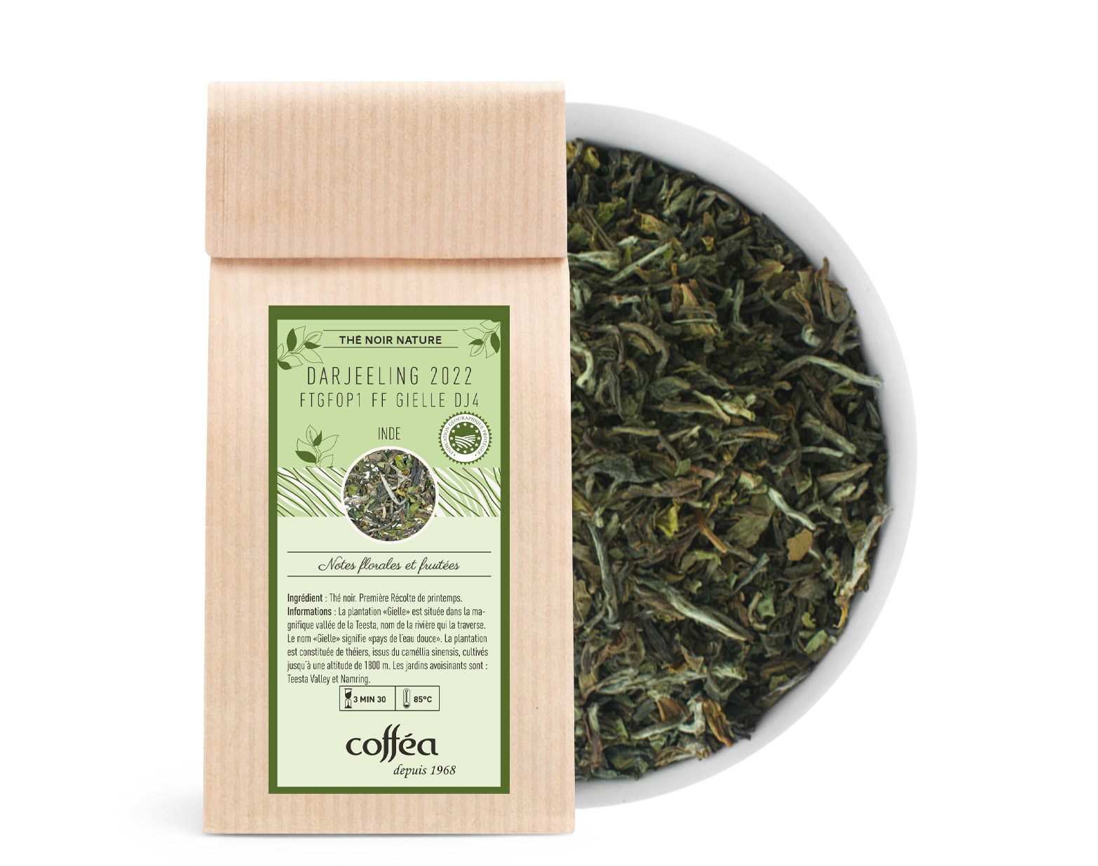 Suggestion : À déguster pur pour savourer toute la finesse de ses arômes floraux, ou avec une touche de lait pour une douceur supplémentaire. Idéal pour accompagner des pâtisseries légères ou un moment de calme.