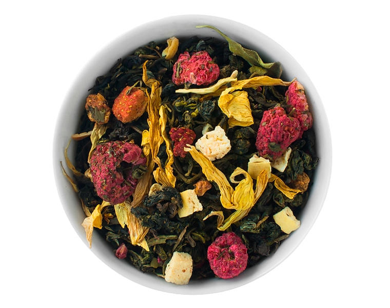 Ingrédients : Thé vert du Kenya, arôme, morceaux de fraise, framboises, pétales de tournesol, morceaux de banane (1 %), morceaux d’abricot (1 %).